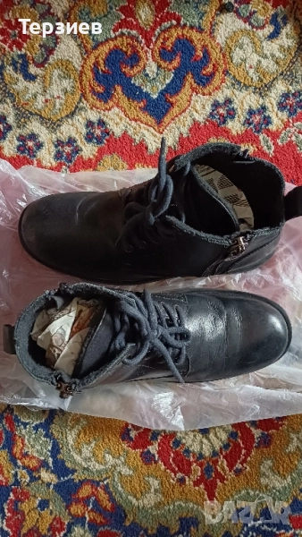 Български боти от естествена кожа с цип за по-лесно обуване, и връзки, номер 39.