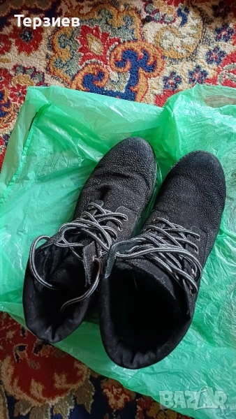 Боти от естествена кожа, топла вата, водоустойчиви, ползвани за кратко, без следи от употреба.