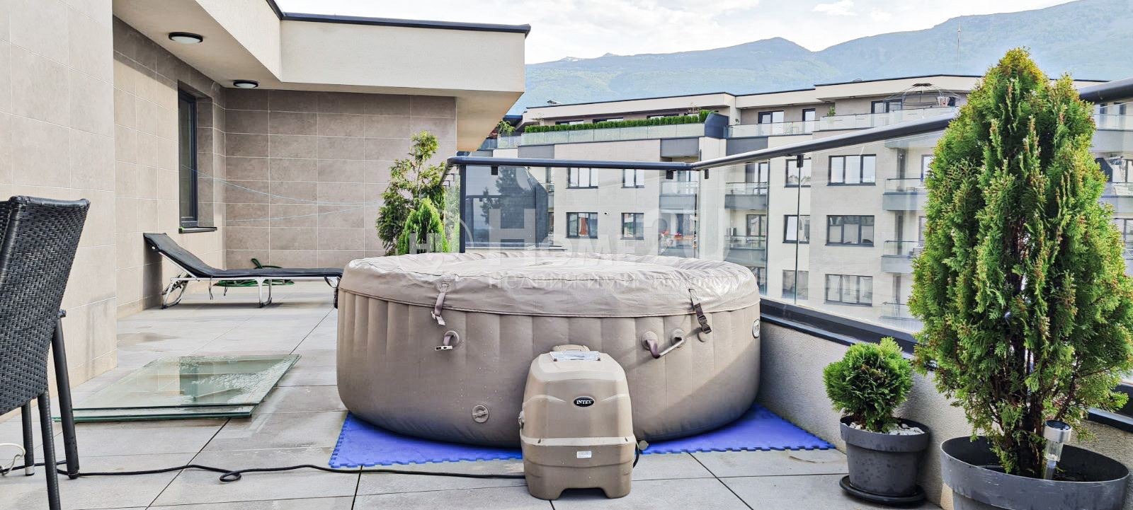 ХоумТуЮ има удоволствието да представи на Вашето внимание луксозен, напълно обзаведен по дизайнерски проект двустаен апартамент с обширна панорамна тераса и гледка към Витоша, разположен в бутиковия комплекс Модера Резидънс в ж.к. Градина. Жилището е с югозападно изложение, тихо и светло, с чиста площ от 61 кв.м., тераса 66 кв.м. и обща площ 146.9 кв.м. Имота е със следното функционално разпределение: антре с вграден гардероб, баня с тоалетна, просторна дневна с кухня, кухненски остров, трапезария и хол с излаз към голяма тераса, както и спалня. Апартаментът се предлага напълно обзаведен с висок клас оборудване климатици Mitsubishi, кухненски уреди Whirlpool. Имота разполага с невероятна тераса, която предлага панорамни гледки към града и към Витоша, като позволява и усвояване на още една спалня. Комплексът предлага отлична среда за живеене контролиран достъп, видеонаблюдение и богато озеленен вътрешен парк с площ от 6 декара, оформен с алеи, пейки и голяма детска площадка. Пространството е изцяло свободно от автомобили, като паркирането е решено в подземните нива. Таксите за поддръжка на комплекса са 97лв. Локацията съчетава спокойствие и удобство в близост до хранителен магазин Фантастико , хипермаркет Kaufland, Бизнес Парк София, Sofia Ring Mall, Ikea, Paradise Center и множество спортни центрове, както и с бърз достъп до бул. Симеоновско шосе и основните пътни артерии на града. За Ваше улеснение прилагаме схема на разпределение на имота. Ако този имот представлява интерес за Вас, обадете се сега и цитирайте този код: 138546.