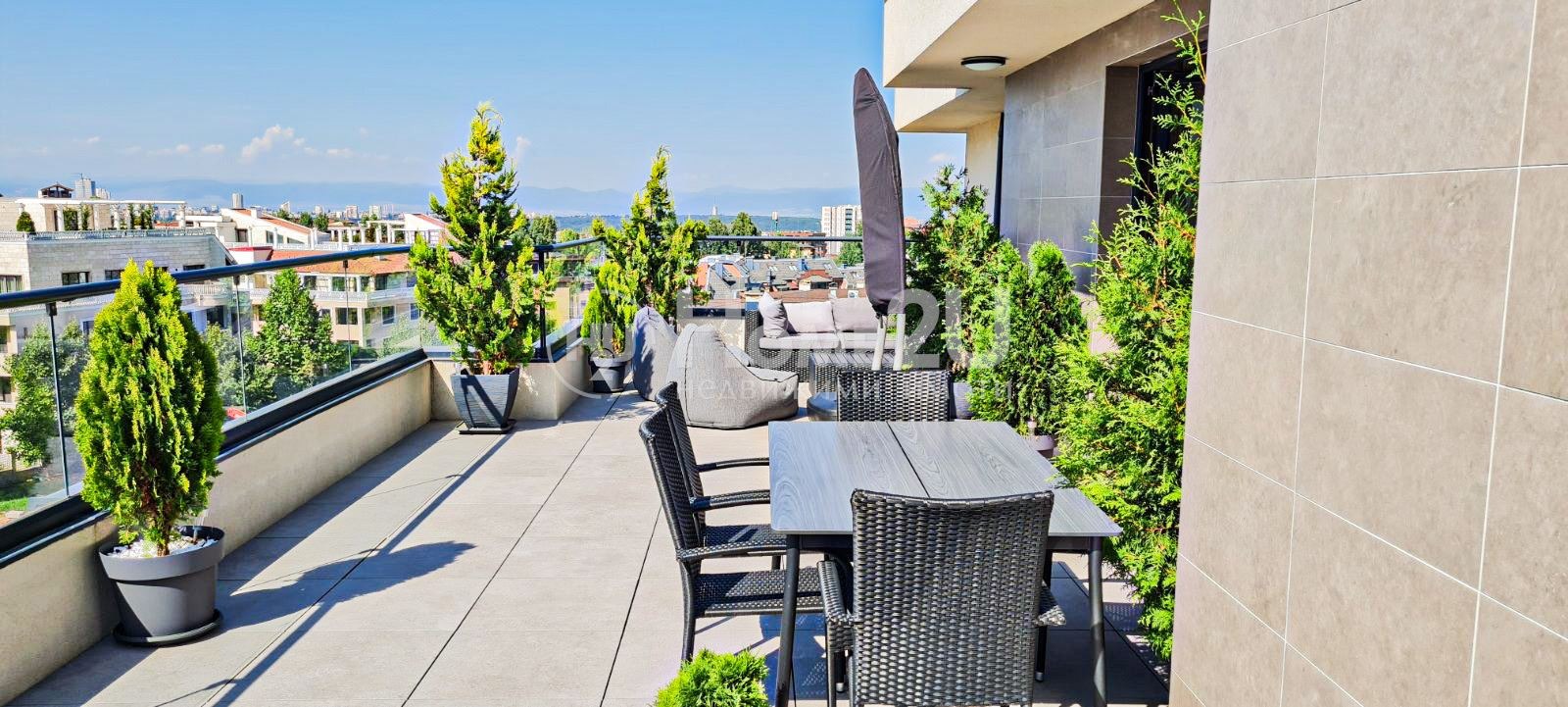 ПАНОРАМНА ТЕРАСА КЪМ ПЛАНИНАТА И ГРАДА ! ! ! НАПЪЛНО ОБЗАВЕДЕН ! ! ! 6 ДЕКАРА ЗЕЛЕНИ ПЛОЩИ ! ! !