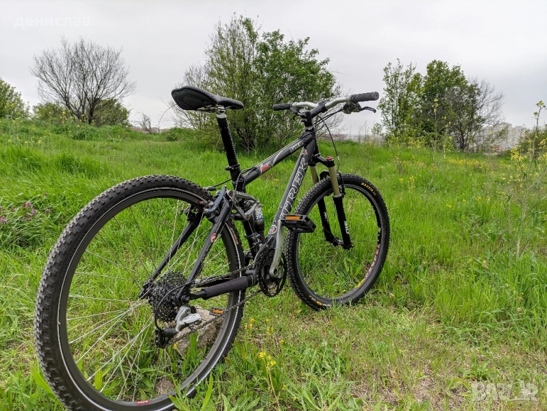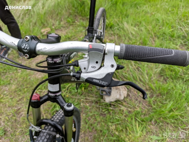 Най - висок клас ръчноизработен американски, планински велосипед (мекица) за трекинг и downhill. Велосипедът разполага с най-висок клас части на Shimano! Ултра олекотен дизайн - само 11.8kg позволяващ маневреност и лекота при каране и спускане. Въздушни амортисьори FOX и Rockshoxs (с две камери). Няма пукнатини в рамката и не е скачано с него! Винаги е поддържано, пазено и смазвано! Модели на частите: -Предна външана гума: maxxis Larsen TT 26:2.0; -Задна външна гума: Crossroads Flak Jacket 26x1.9; -Предна въздушна вилка: ROCK SHOX dual air SID SL с заключване и контрол на rebound; -Заден амортисьор: FOX float racing shox; -Спирачки, скорости и команди: Shimano deore XT (най-високата серия); -Предна главина: Shimano Mega drive train; -Задна главина: Hugi FR Freeride MTB Disc Hub; -Среден дираельор: Shimano Deore LX; -Оптигач: Shimano deore XT; -Седалка: Juliana Primiero Saddle — много удопба премиум седалка от естествена кожа!; -Кормило: SSR 620mm 6 beno; -Предна капла: Rolf Propel; -Задна капла: Matrix single track atb comp с двожение DT Swiss HUGI FR; Тагове: