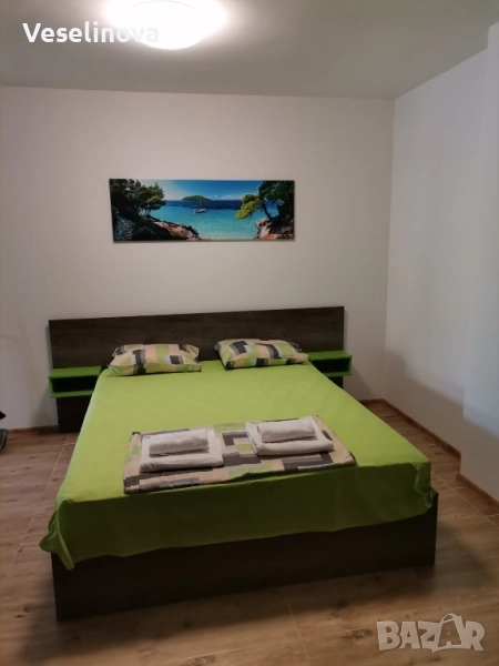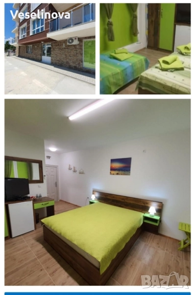 Нова кооперация, намира се на ул Нептун 6 близо до центъра и плажовете. В близост има лунапарк, заведения, хранителни магазини и басейни. Улицата, на която се намира сградата е тиха, не много оживена. Предлагаме двустаен, двуспален апартамент със две спални две бани външна и вътрешна кухня, разтегателен диван и разтегателен фотьойл, подходящ за 6.7 човека. Веранда и маса за гости. Обзаведен със спални, хладилник, телевизия, интернет, климатик, собствен санитарен възел. Намират се на 200 м от плажа и центъра на града. Осигурено парко място. В съседство със сградата има басейн който може да се ползва от гостите срещу допълнително заплащане. Приморско е голям Черноморски курорт и притежава превъзходни качества за почивка на море в съчетание с много забавления Местоположението му в близост до резерват Ропотамо древното светилище Бегликташ предоставя изобилие от възможноси за разходки сред природата и посещения на исторически паметници. Мястото предлага както семейна спокойна почивка така и престой с активен нощен живот и множество партита и забави. За въпроси относно свободни дати, моля пишете на Viber или на лично. Запишете точни дати на резервация и брой гости, тел. 0882299715 Цените са за целия обект (апартамент) а не на брой гости и варират спрямо периода, и месец, на ползване. При 10 нощувки 10% отстъпка цените. Разполагаме и със други обекти в същата сграда. Добре дошли на всички.