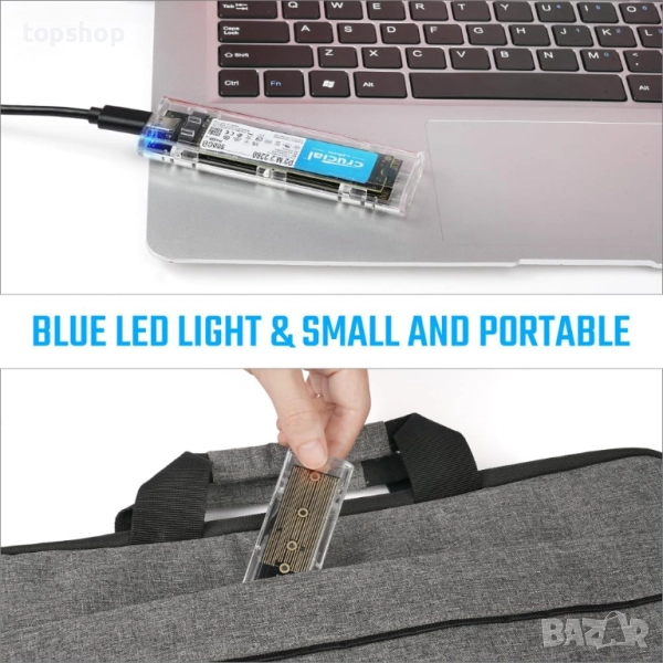 【КОМПАКТЕН И ПРЕНОСИМ】Този M.2 SSD корпус е с размери само 10,8 * 3,4 * 1,2 см. Малък и изискан, лек и преносим. Може лесно да се побере в раници и джобове и можете да го носите със себе си без никакво натоварване. Независимо дали сте на среща, пътувате или трябва да излезете за работа, можете бързо да го извадите и да го използвате, за да задоволите непосредствените си нужди от съхранение.