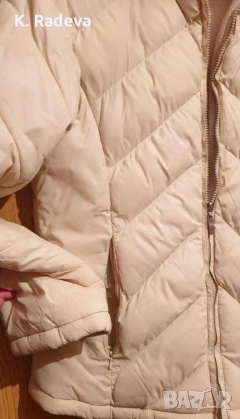 Зимно топло яке с подвижна качулка, цвят екрю (бежов), с два джоба с цип. Размер: 48 (2XL). В отлично състояние. Без забележки.
