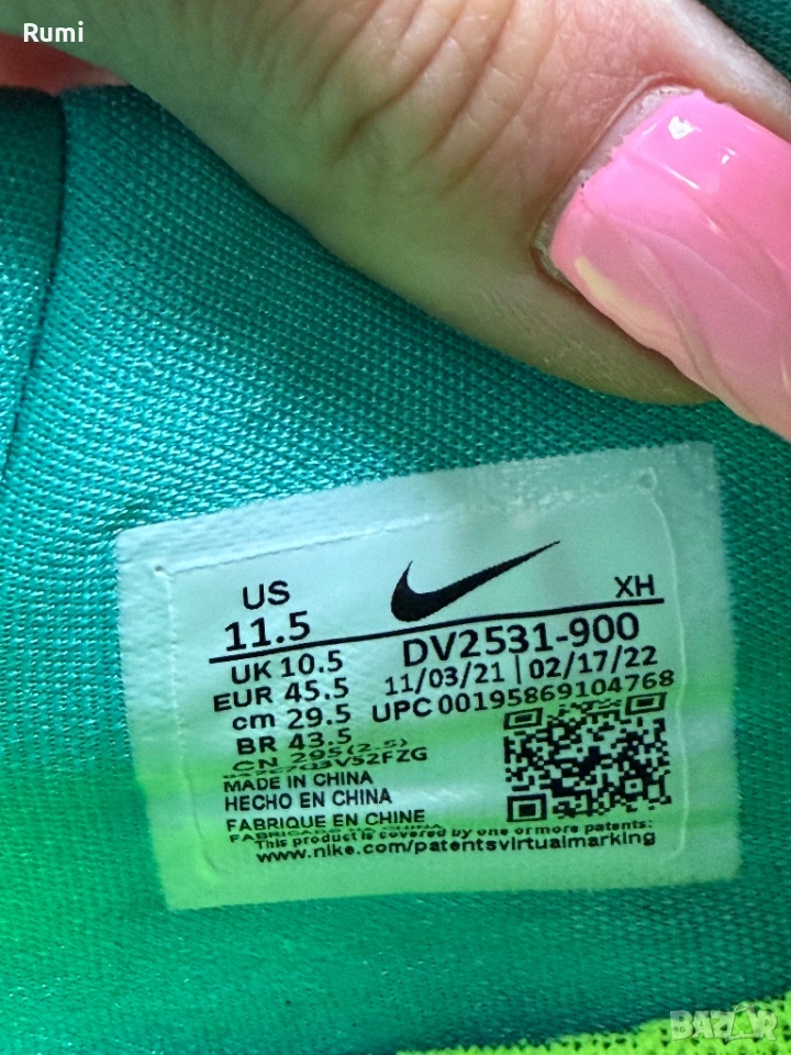 Nike Kyrie Low 5 „Community“ предлага плетена горна част, която съчетава нюанси на аквамарин, розово и синьо. Червени ленти са вградени във връзките за усещане за затвореност. Вътрешната страна на езика е с бродирани емблеми „Kings“ и „Queens“ в различни цветове – препратка към връзката между звездите на NBA и WNBA. Междинната подметка Cushlon по цялата дължина съдържа възел Zoom Air, като и двете са разположени върху компютърно генерирана гумена външна подметка. С уникален цветен десен с който няма как да останете незабелязани . В страхотно състояние на практика нови без следи от носене стоят страхотно по крака . Като размер са 45,5 н със стелка 29,5 см !