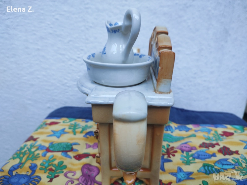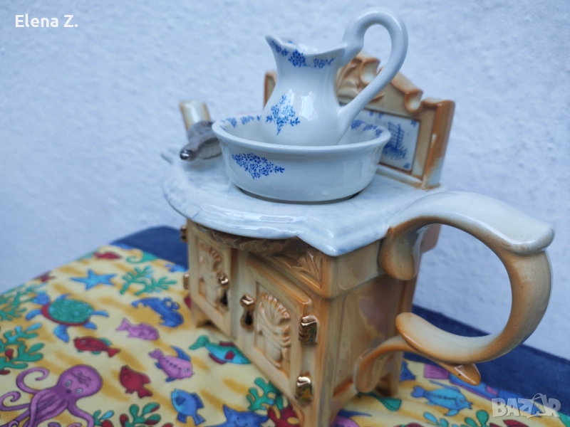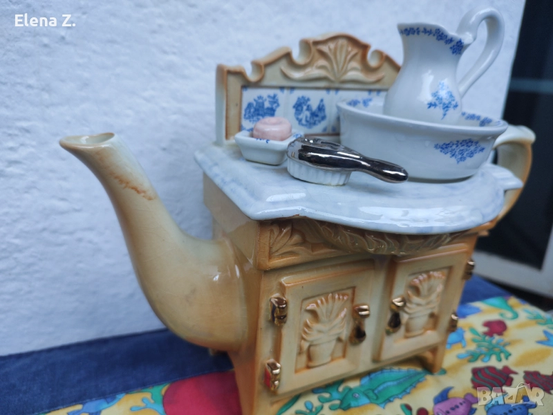 Голям керамичен колекционерски чайник на британеца Paul Cardew, оформен като красив викториански умивалник.