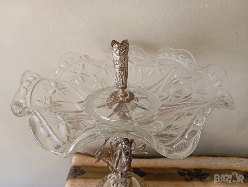 Посребрен метален корпус,кристална купа.