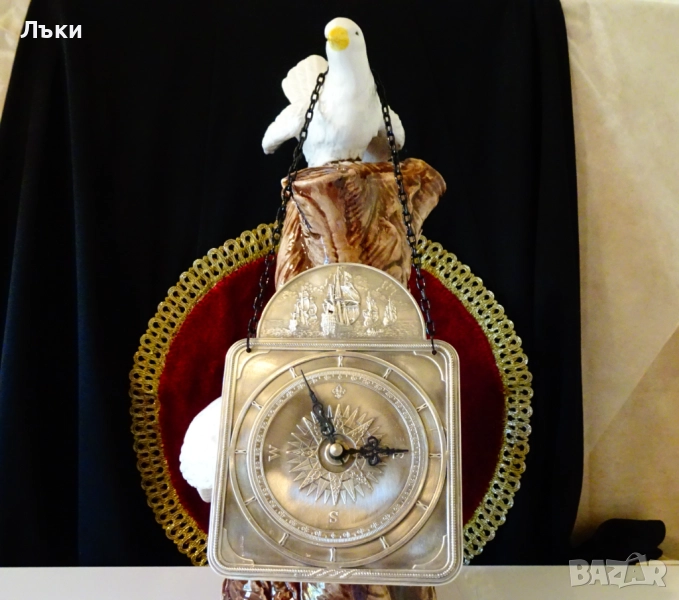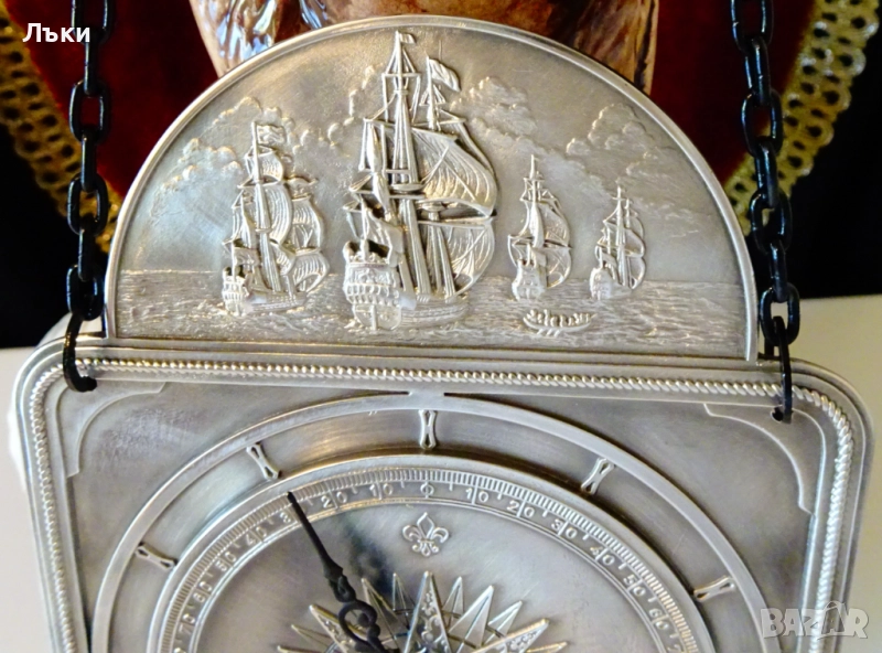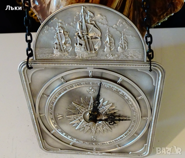 кораби,платноходи.Циферблата има дизайн на корабен компас и барокови