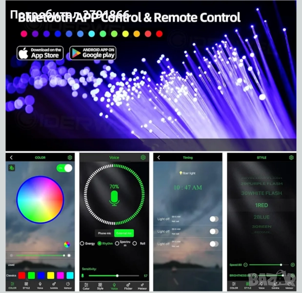 - Тип управление: Интелигентно Bluetooth управление чрез приложение