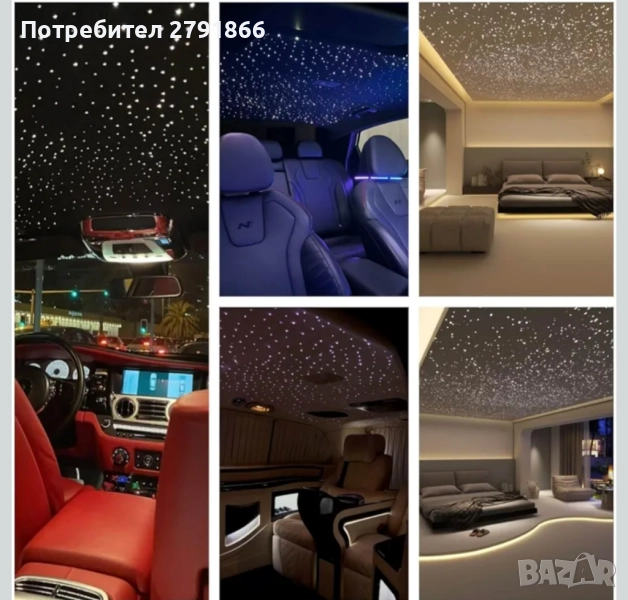 Звездно осветление за таван с дистанционно,Bluetooth управление чрез приложение,200 бр. 2 метра