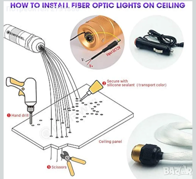- Водоустойчив оптичен кабел, така че няма риск от токов удар (RGBW светлинните двигатели трябва да се съхраняват на сухо място)