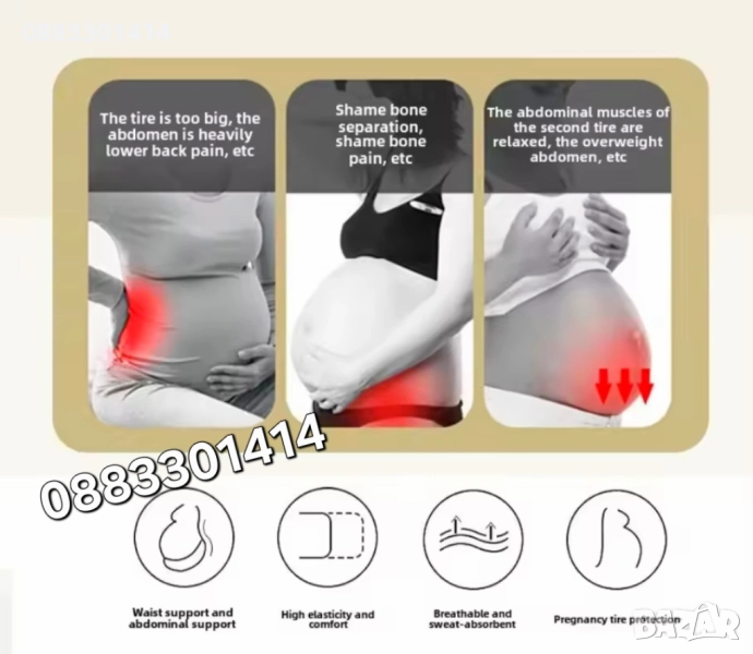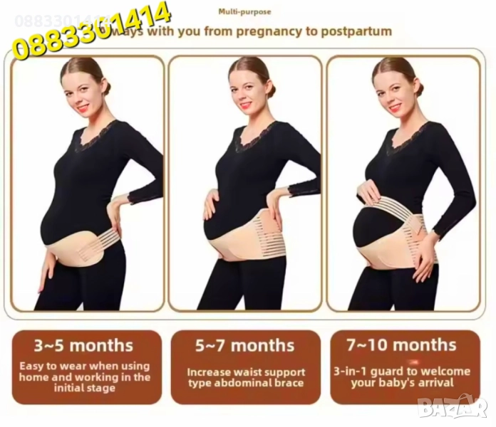 Подходящ е за носене както по време на бременността, така и след раждането, помагайки за облекчаване на болките и подобряване на стойката.