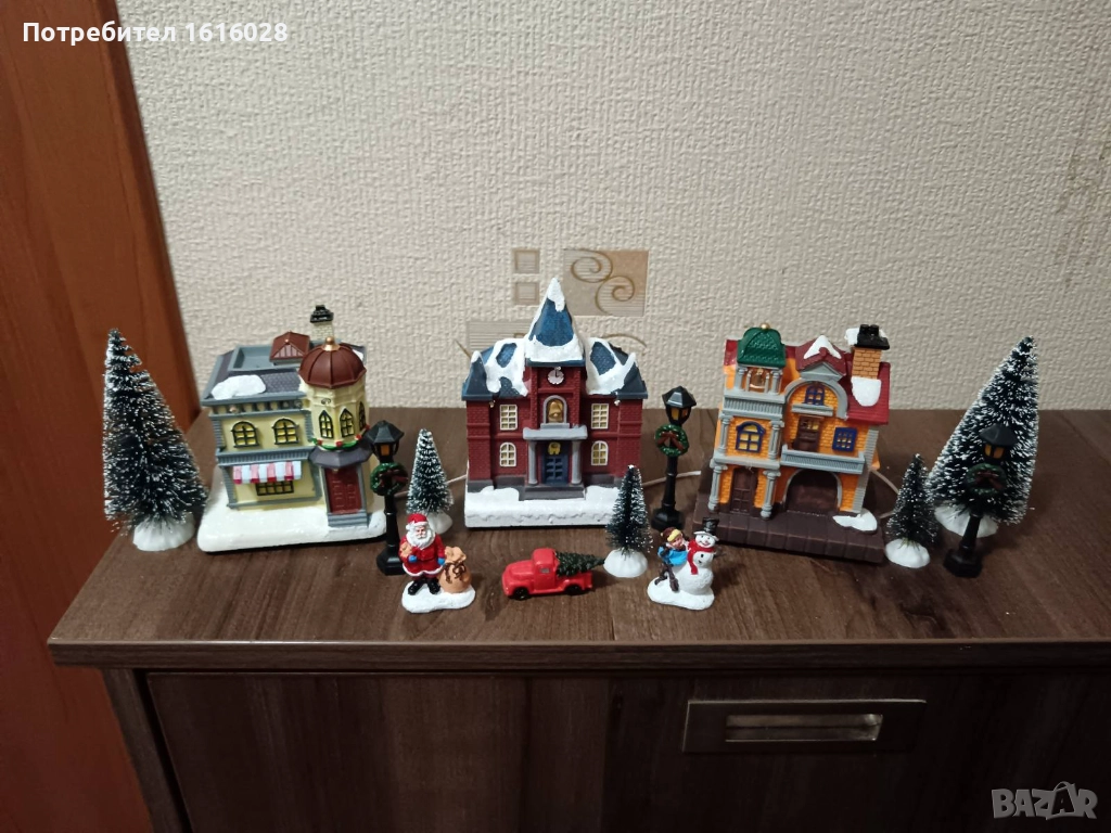 Нови LED светещи селца.с 3 светещи къщички, общо от 14 фигури. Всяка къщичка свети,работят с 2 батерии АА включени в една от къщичките и тест бутон за проба.Във всяка къщичка могат да се сложат батерии за да свети самостоятелно,декорирана на различно място от другите. Всяка фигурка е със самостоятелна поставка и може да се декорира на различно място и да се комбинират с други фигурки и играчки на фирмата MAGIC VILLAGE.за приказна Коледна декорация около елхата,които може да видите в други мои обяви.