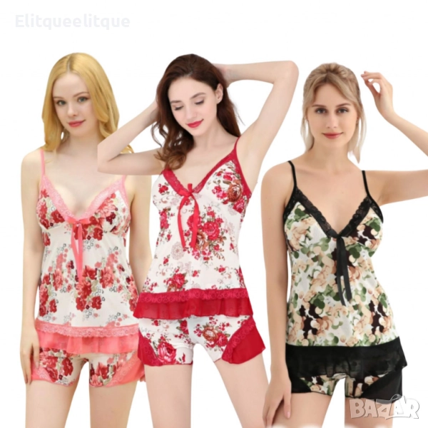 Дамска нощница от две части с регулируеми презрамки. Семплата шарка в черно с червено създава елегантен и стилен вид. Нощницата има V-образно деколте и изискана дантелена панделка, която добавя допълнителен акцент на дизайна. Подходяща е за всяка фигура благодарение на универсалния размер, който обхваща S до М. Тази нощница е идеален избор за комфорт и изтънченост през нощта.