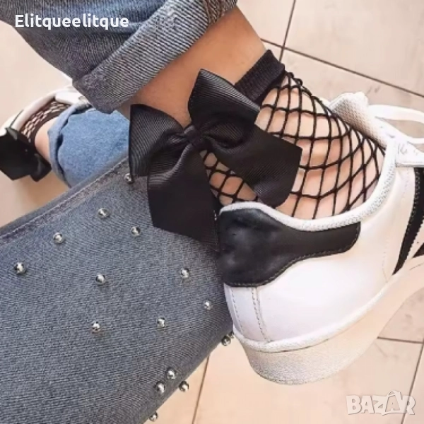 Дамски къси чорапи от мека мрежа, в розов , черен и син цвят, които добавят стил и елегантност на всяка визия. В горната част на чорапите има сладка сатенена панделка, придаваща им изискан и моден вид. Идеален избор за създаване на шикозна и женствена стилистика. Чорапите са подходящи за размери от 36 до 41 и са изработени от 80% найлон и 20% еластан, осигуряващи комфорт и еластичност през целия ден.