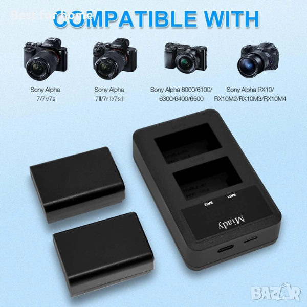 Miady Комплект от 2 резервни зарядни устройства за Sony NP-FW50 за фотоапарати Sony A6000 A6500 A6400 A6300 A7 A7II A7SII A7S A7S2 A7R A7R2 A7RII A55 A510 RX10 RX10II.