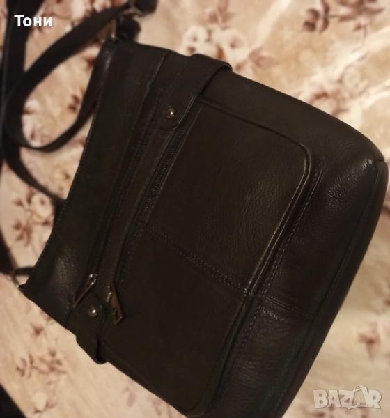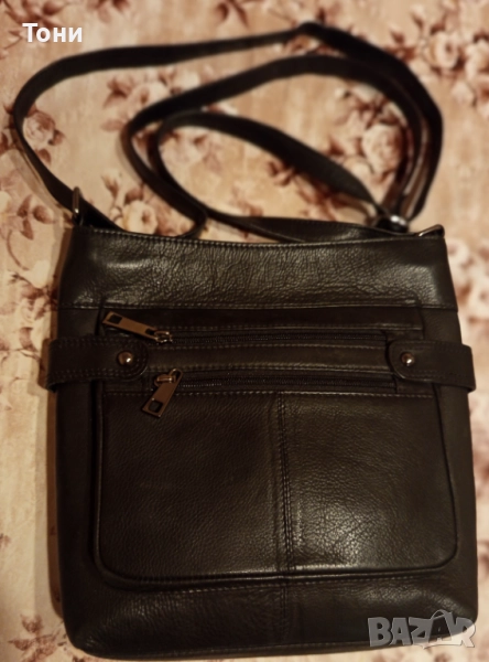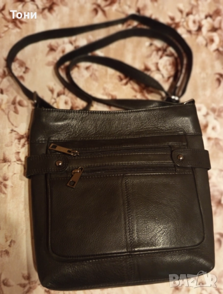 Нова Кожена Дамска Чанта с регулируема дръжка. С четири отделения.