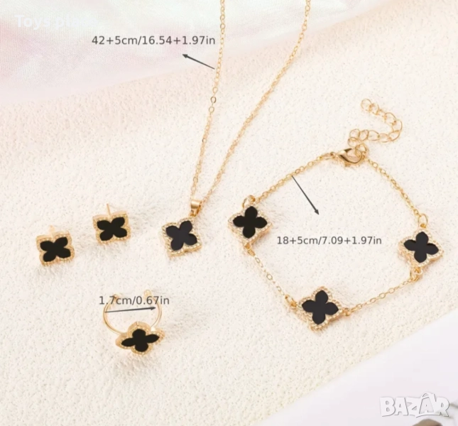 Комплект 4 части Черна детелина, снимка 1 - Бижутерийни комплекти - 52347662 Комплект 4 части Черна детелина, снимка 2 - Бижутерийни комплекти - 52347662 1/2