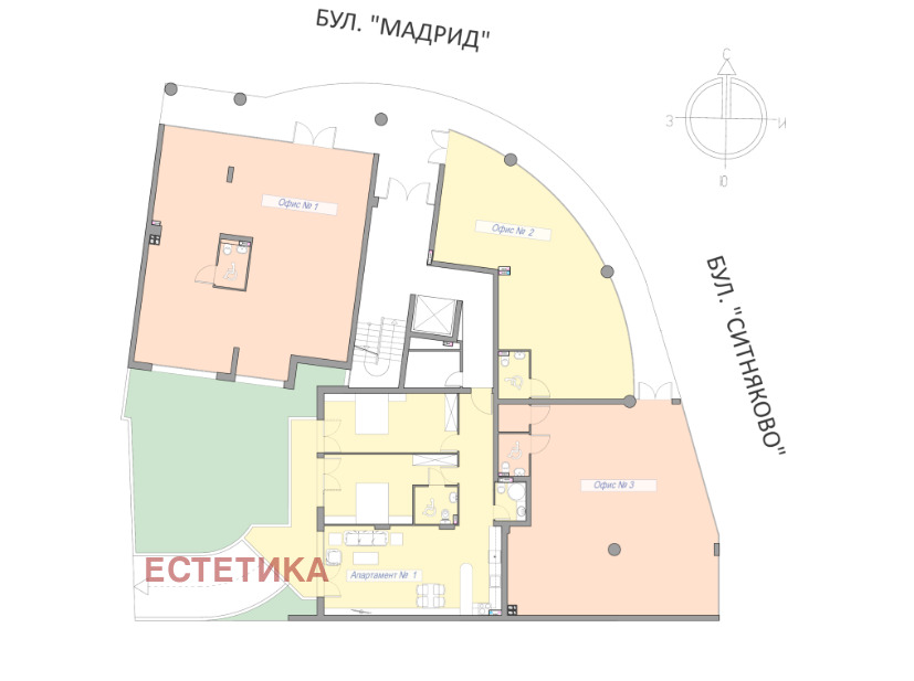 Предлагаме и други площи 132м2- офис 3, 150м2-офис 1 и 152 м2-офис 8, офис 7-71 кв.м.
