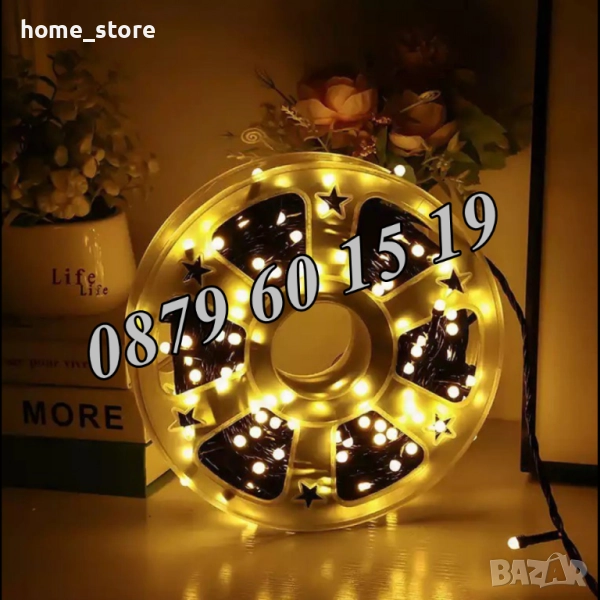 Вариант 3: Коледни лампички 50 метра на макара, жълта светлина - 33 лв.