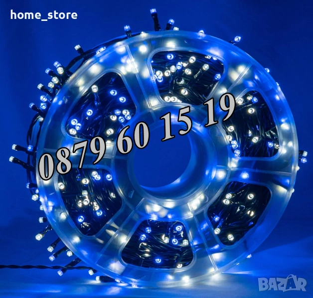 Вариант 4: Коледни лампички 50 метра на макара, синя светлина - 33 лв.