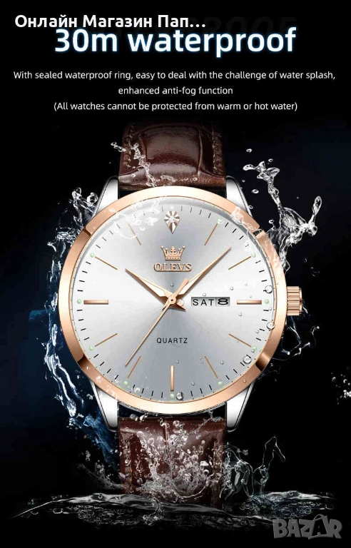 Водоустойчивост: 3BAR / 30 м (пръски и дъжд)