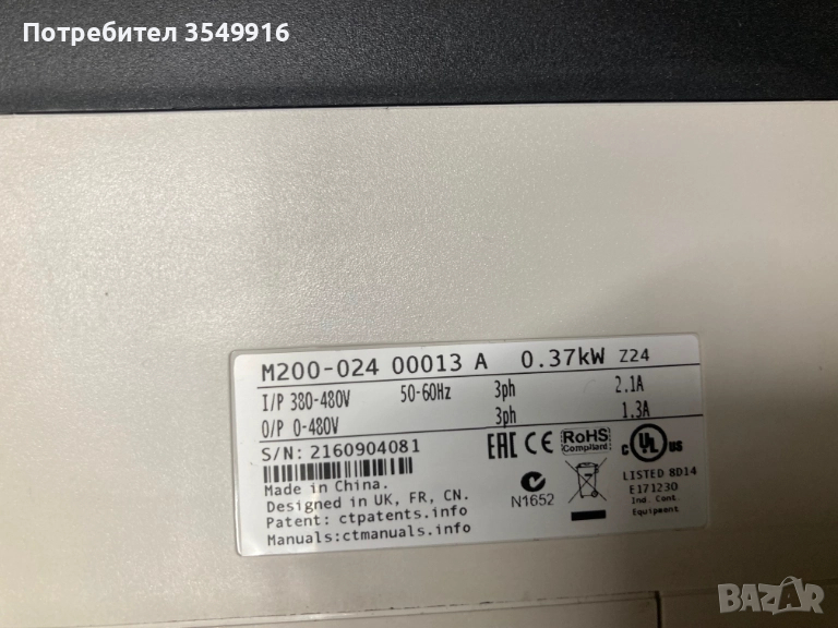 Честотен регулатор(инвертор)Emerson Commander M200 0,37кw/400в → Обява 52348765
