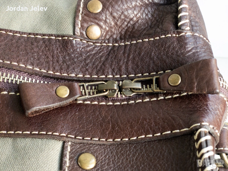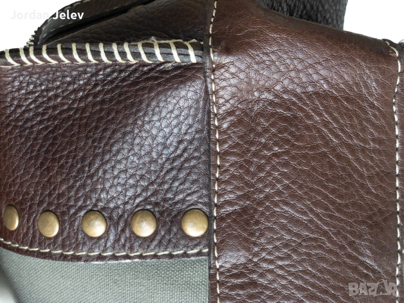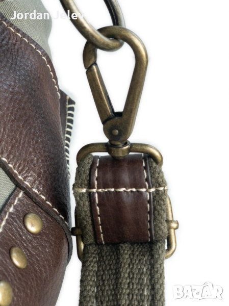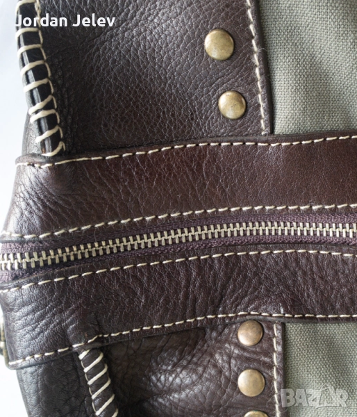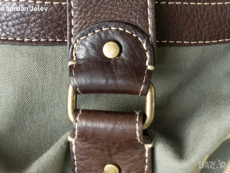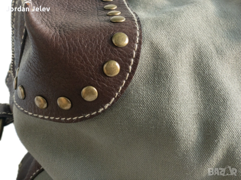 Материали: Здрав зелен текстил - брезент с елегантни, плътни акценти от ЕСТЕСТВЕНА КОЖА.