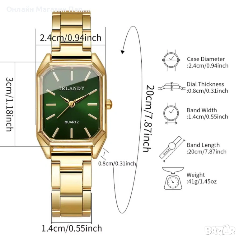 Модел IRLANDY V248 впечатлява с изчистен и изискан дизайн – правоъгълен корпус с елегантно изрязани ъгли, който придава съвременна визия и женствен стил.