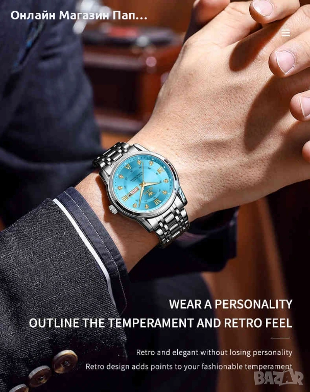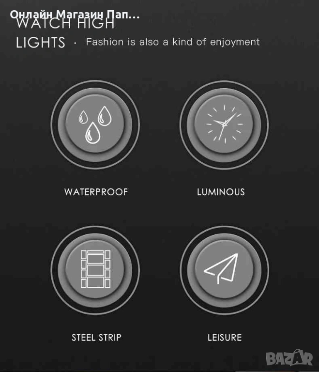 Функции: Светещи стрелки, Двоен календар, Водоустойчивост, Показване на седмица