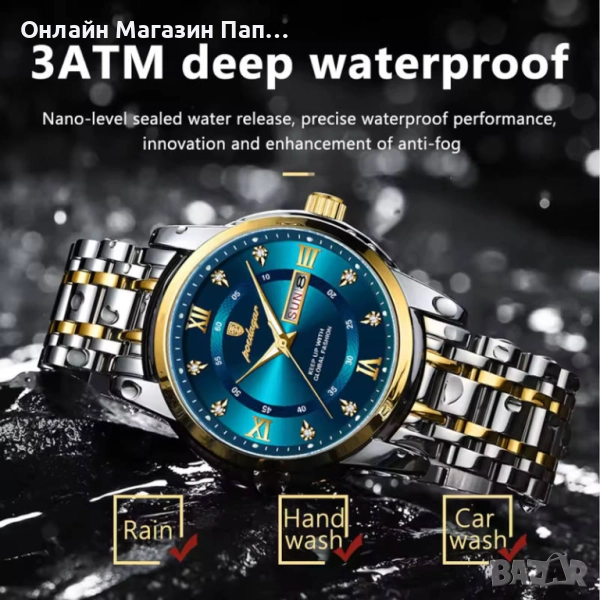 Функции: Луминесцентни стрелки, Дата, Ден от седмицата, Пълен календар, Водоустойчив (3 АТМ)