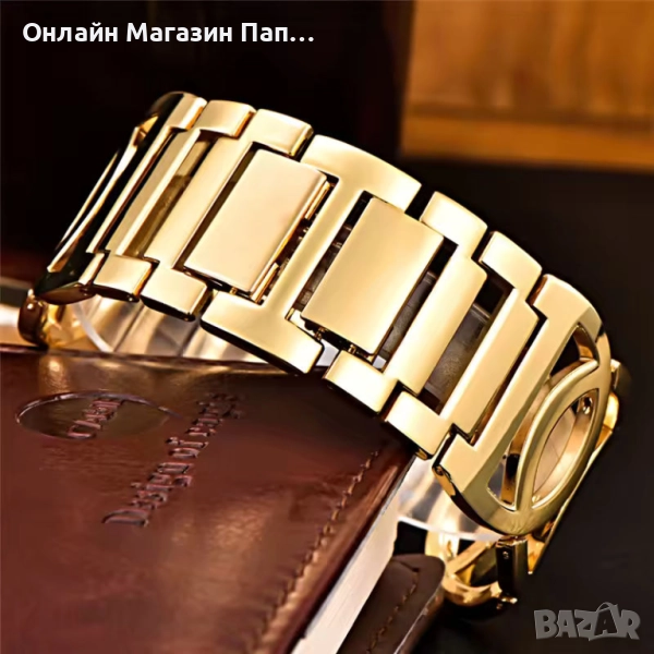 Механизмът е кварцов, осигуряващ прецизност и надеждност. Диаметърът на циферблата е 28 мм, дебелината – 8 мм, а верижката от метална сплав (30 мм ширина) е едновременно стабилна и комфортна.