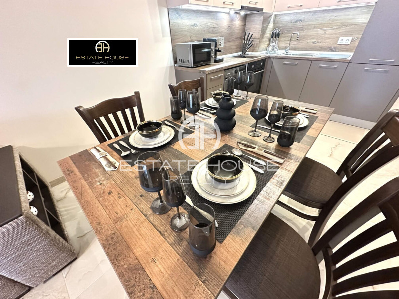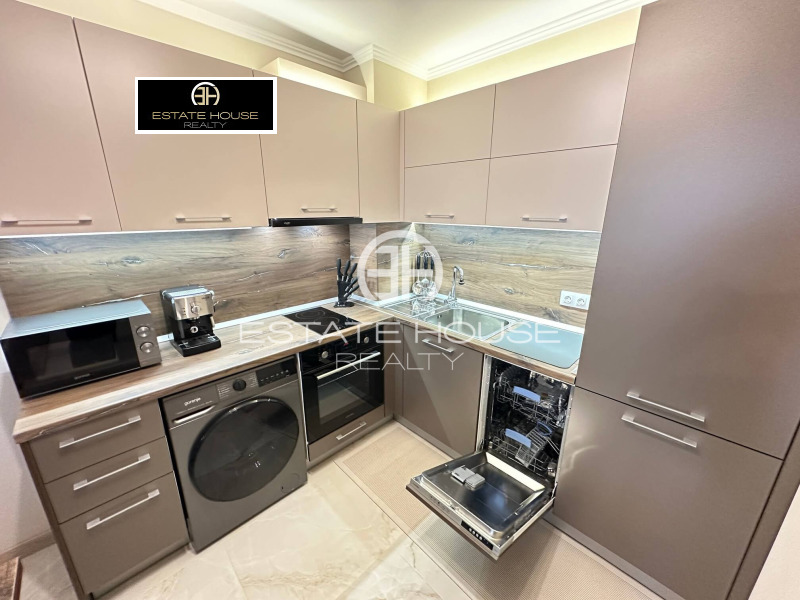 Апартаментът е напълно обзаведен и оборудван до последния детайл, като очаква своите първи наематели. Кухнята е снабдена с висок клас електроуреди: комбинирана пералня със сушилня, съдомиялна, хладилник, абсорбатор, котлони, фурна, микровълнова печка и кафе машина. Всички шкафове са с механизми BLUM за плавно затваряне, а във всяка стая има смарт телевизор.