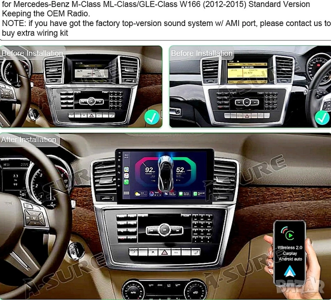 Мултимедия за Mercedes Benz ML, GL, W166, X166, навигация, Android, Мерцедес ML, GL, Андроид, Екран