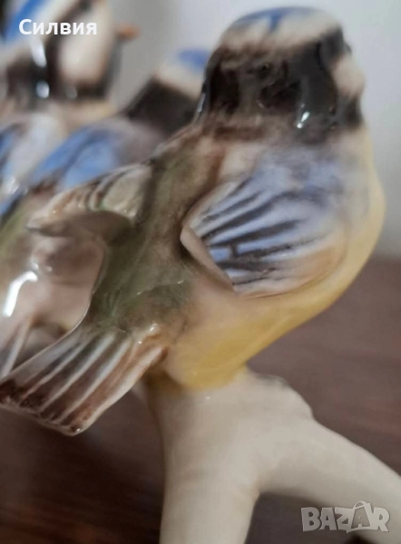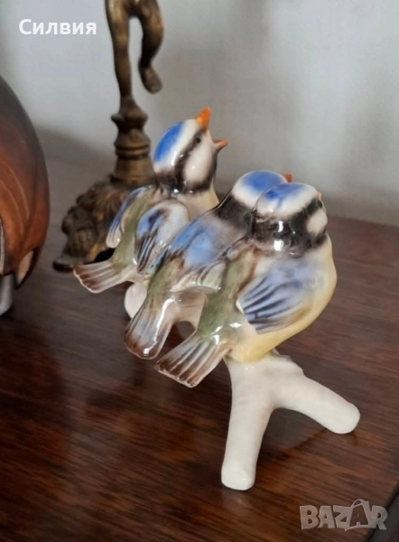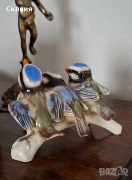 🕊️ Немски Винтидж Порцелан с История 🕊️ Фигурка Goebel от 1967 г. - "Три Пролетни Птичета" Потопете се в очарованието на 70-те години с тази автентична порцеланова фигурка от Goebel. Този красив експонат е истинска капсула на времето от 1967 г., изобразяваща три жизнерадостни синигерчета, скупчени на клон – едното дори е отворило човка за песен или храна. Те изглеждат като живи, замръзнали в очакване на майка си. Ярките сини шапки и детайлната изработка на перушината са характерни за майсторството на Goebel. Марка: Goebel (Западна Германия), Производител на прочутите Hummel фигури. Дата: 1967 г. – Годината е гравирана върху порцелана (заедно с моделния номер "Lang 7V"). Размери: Дължина 11,5 см, Височина 8 см – Перфектен акцент за витрина или рафт. Забележка за Състоянието Фигурката е с история, която личи: Има дефект: На едно от птичетата крилото е счупено (Моля, вижте последната снимка). Останалите елементи са с отлично запазена глазура и ярки цветове, демонстриращи качеството на Goebel. Дефектът е причина за значителното намаление на цената, което я прави достъпна възможност да добавите рядък Goebel артикул от 60-те години към Вашата колекция, или да я използвате като основа за реставрация. Цена: 5️⃣5️⃣лв.28,12 €•✽✧✽•°”˜🐦”°•✽✧✽•°”˜🐦”°•✽✧✽•°”˜🐦”°•✽✧✽•°”🐦˜”°•✽✧✽•