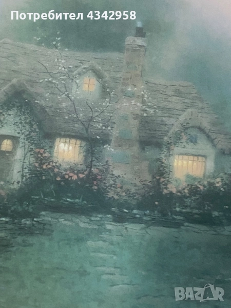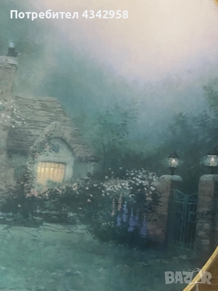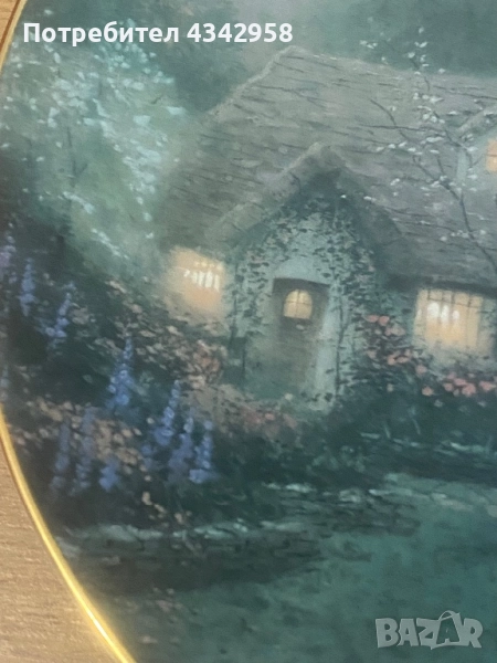 Това е колекционерска чиния, изобразяваща „Къщата на Мерит“, картина на Томас Кинкейд.