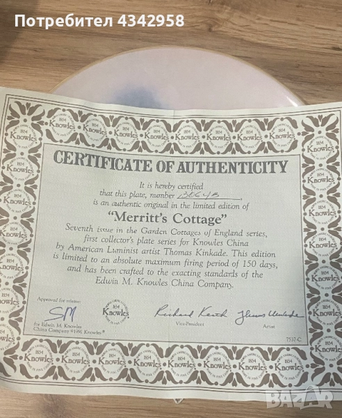 Порцеланова чиния « Къща на Мерит» с сертификат.