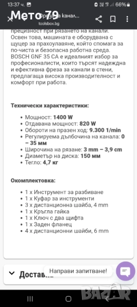 Bosch GNF 35 CA Фреза за канали в стени → Обява 52350624