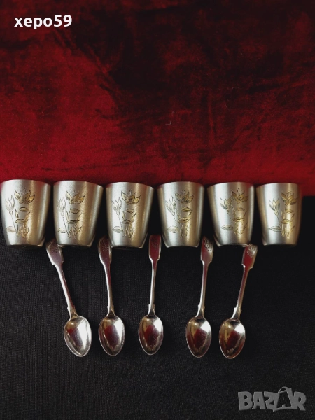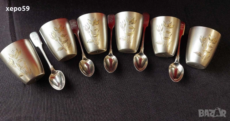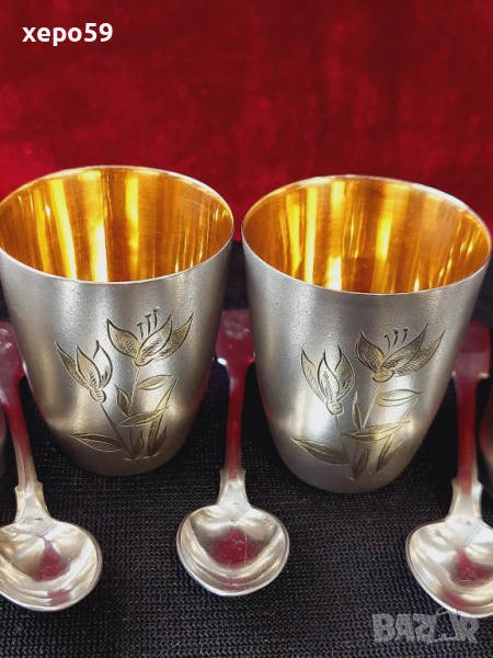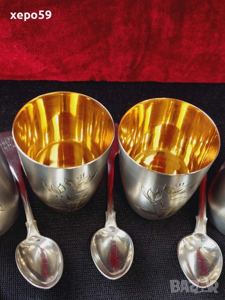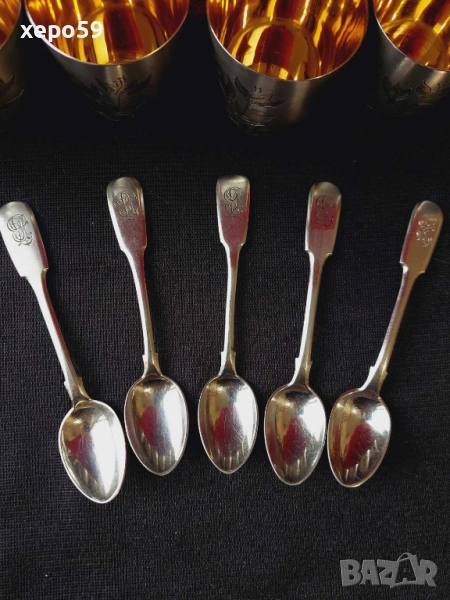 СССР-сребърни 875 чаши с позлата,шест броя/Царска Русия пет лъжички сребро 84-100 лв за брой/ → Обява 52350885
