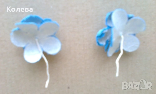 около клипс. Излишната тел може да се отреже. Стоят много кокегно на ушите. Два чифта бели и два чифта сини. Цена за 1 чифт –3 лв. Единствени екземпляри.