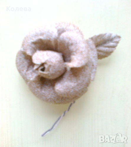 5. Кафеви Розичка – от светлокафяв текстил меланж с бяло, изкуствени нишки,които създават илюзията за блясък. 11 / 7 см. Цена 4 лв.