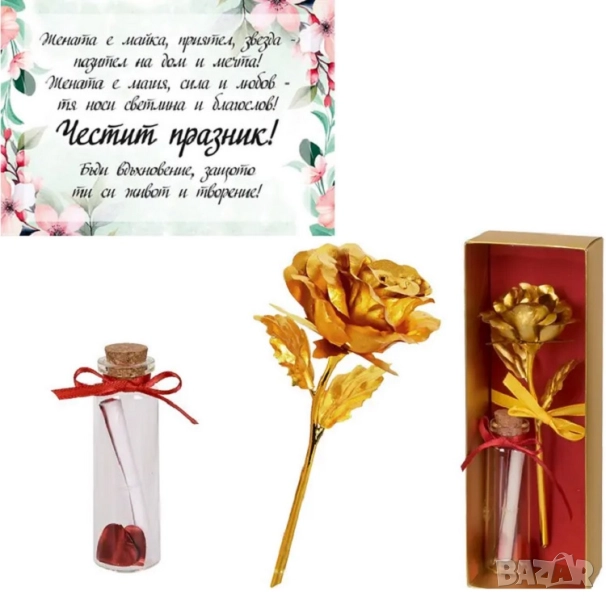 Подаръчен комплект - Специално за теб! със златна роза и послание