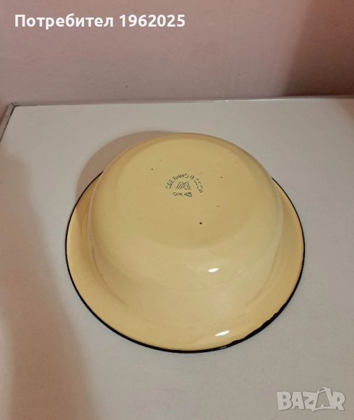 1 Българска Стара емайлирана тава Диаметър - 24см 1 Стара емайлирана купа/легенче СССР Диаметър- 25см и Дълбочина- 9см. ЦЕНА ЗА БРОЙ - 35лв.