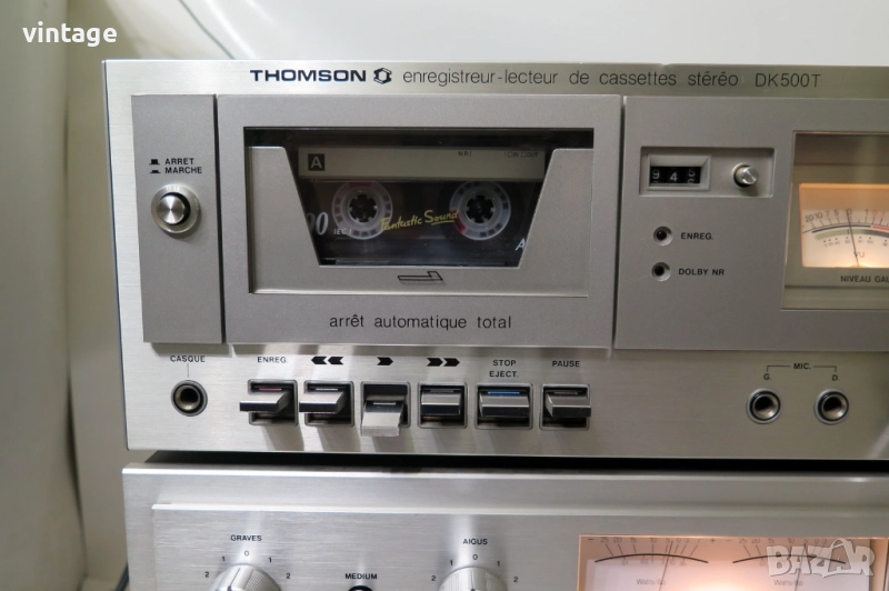 касетен дек THOMSON DK 500T, стерео тунер THOMSON T 3004T. Отлични технически, всичко работи коректно, дека е с нови ремъци. Много добър външен вид, две дребни забележки, снимани детайлно. Не намирам много технически характеристики, изходна мощност на усилвателя 2х40 вата. Приложените снимки и видео са реални.