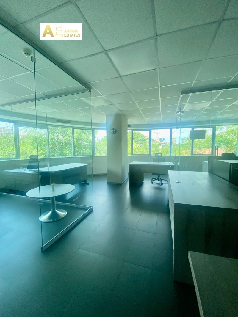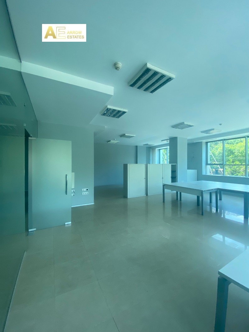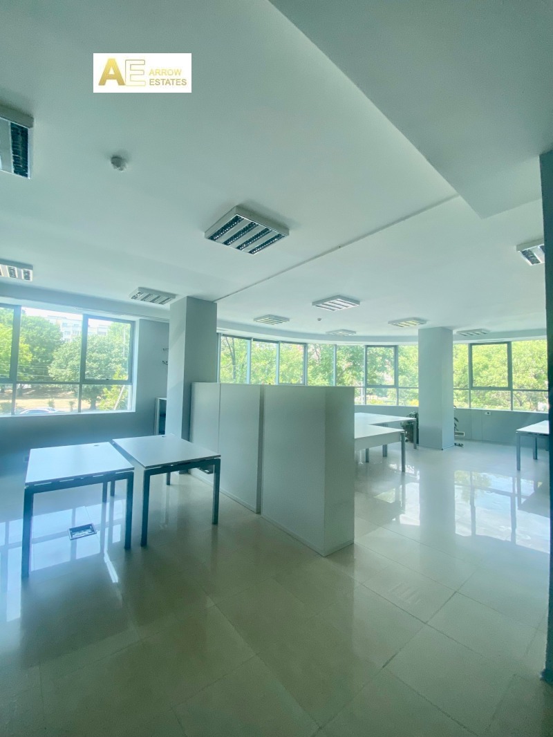 Преставителен офис в луксозна офис сграда разположена на комуникативна локация в близост до идеален център и НДК.Офис сграда е със денонощна охрана ,видеонаблюдение и контрол на достъпа. Подова настилка е гранитогрес,ламинат, стени латекс, централно отопление и климатизация, шумоизолация, санитарен възел, , луксозни общи части.Възможност за наемане на подземни паркоместа.В сградата има заведение за хранене ,около сграда други бизнес сгради и заведения за хранене,пред сградата спирка на градски транспорт трамвай,автобуси и нова метростанция на 5 мин пешеходно разстояние.