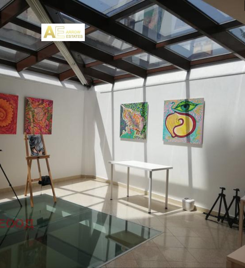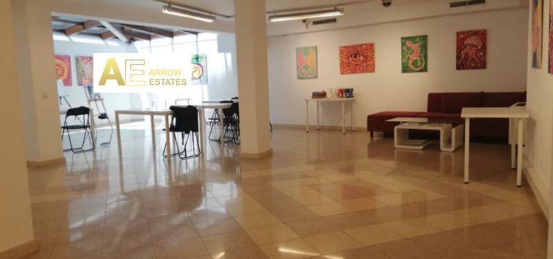 Представителен офис в сграда от смесен тип.Имота е разпределение тип отворено пространство ,разположен на две нива.Партерното ниво с площ 218 кв.м.,състои се от помещение тип отворено пространство.Сутеренното ниво с площ 223 кв.м.,състои от помещение тип отворено пространство, кабинет ,склад ,малък кухненски бокс, 2 броя WC.Пода е завършен с гранитни настилки. Двете нива са свързани посредством вътрешно стълбище. В района на административният и културен център на столицата.