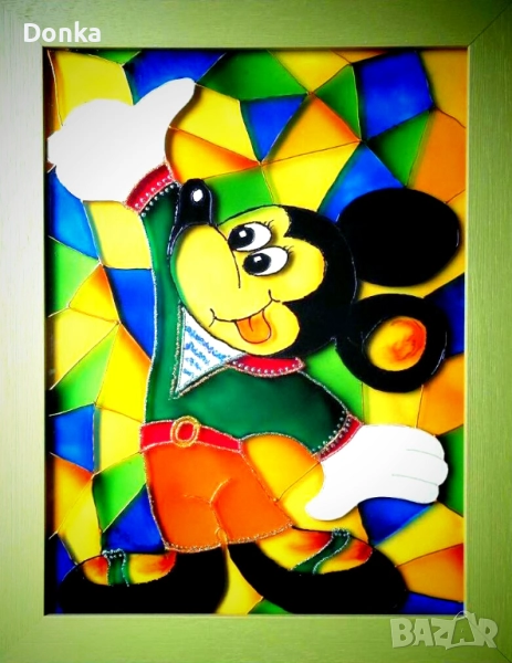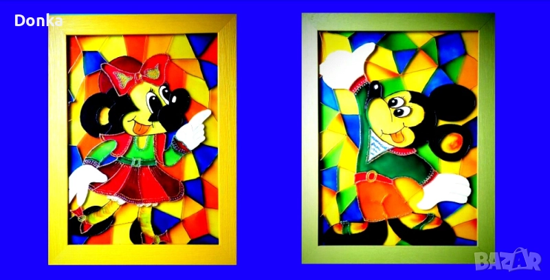 Подарък за детска стая - авторски оригинални СТЪКЛОПИСИ "Мики и Мини Маус" → Обява 52352221