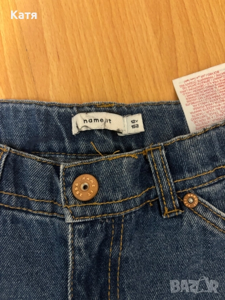 Нови дънки ,необувани само с махнат етикет.Марка Name it.По етикет за 12 години,152 см.При интерес мога да измеря.С вътрешен ластик за стесняване на талията при нужда.