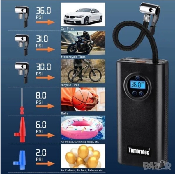 Акумулаторен компресор с цифров дисплей и автоматична функция