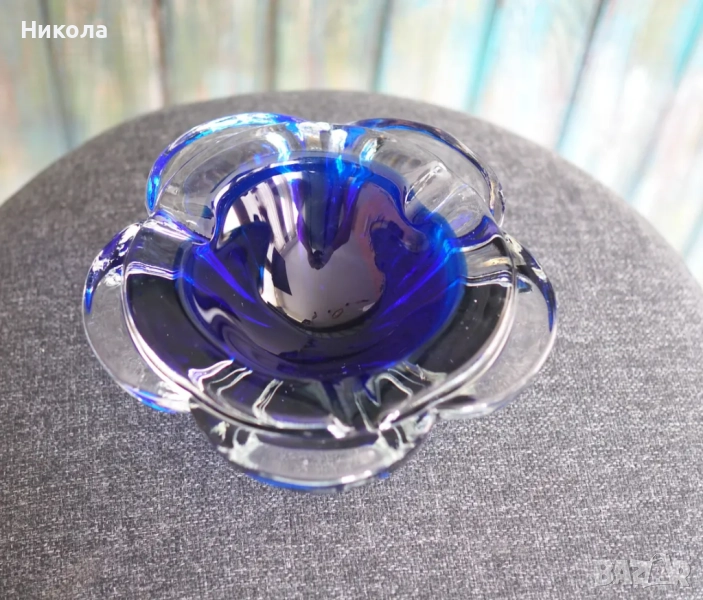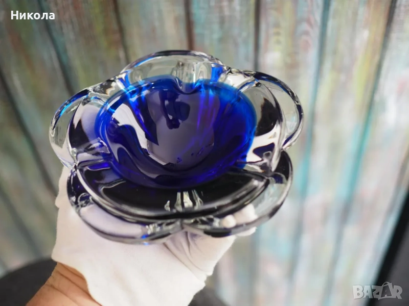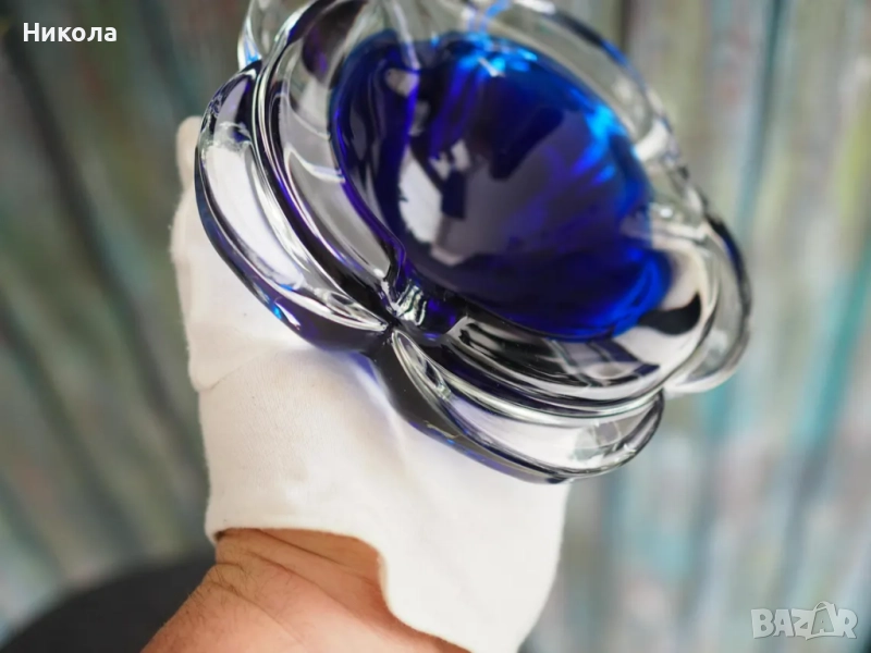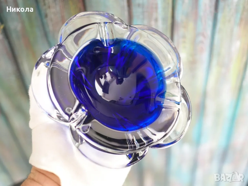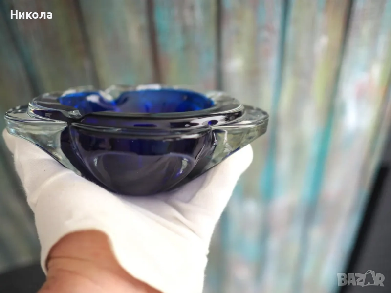 Масивен винтидж пепелник за пури от Antonio Imperatore,Murano в кобалтово синьо– 1,3 кг,